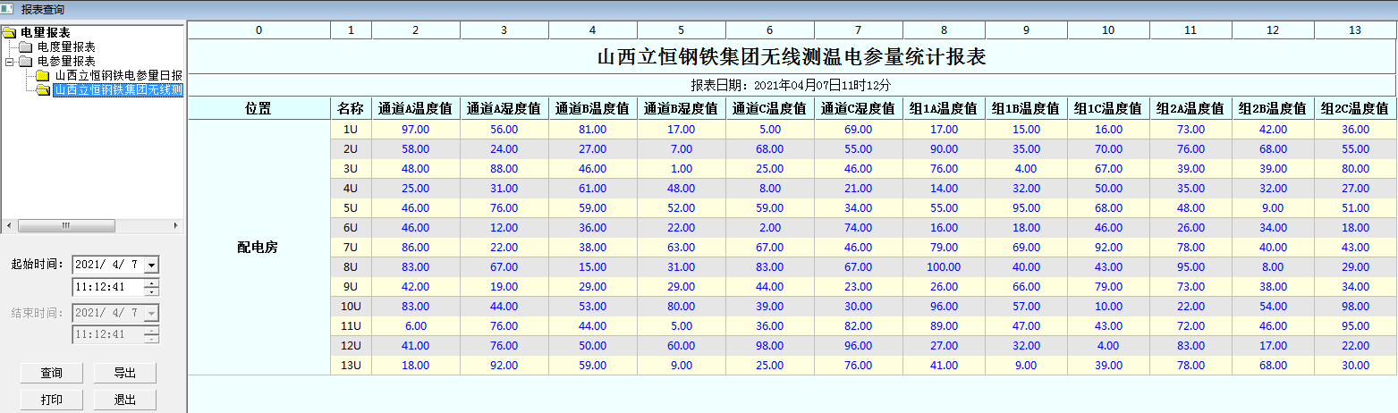 5.3運(yùn)行報表:查詢及打印各測溫點(diǎn)指定時間的溫度數(shù)據(jù)。