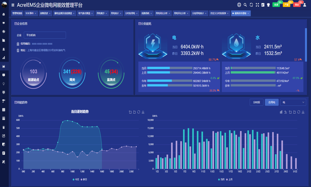 綜合監(jiān)控功能包括能源數(shù)據(jù)采集與基本處理、系統(tǒng)集中監(jiān)控與重點(diǎn)用能設(shè)備狀態(tài)及能耗監(jiān)視、在線能效分析、能源信息歸檔和管理、能源系統(tǒng)時(shí)間及故障記錄、工藝與設(shè)備故障報(bào)警與分析等功能。