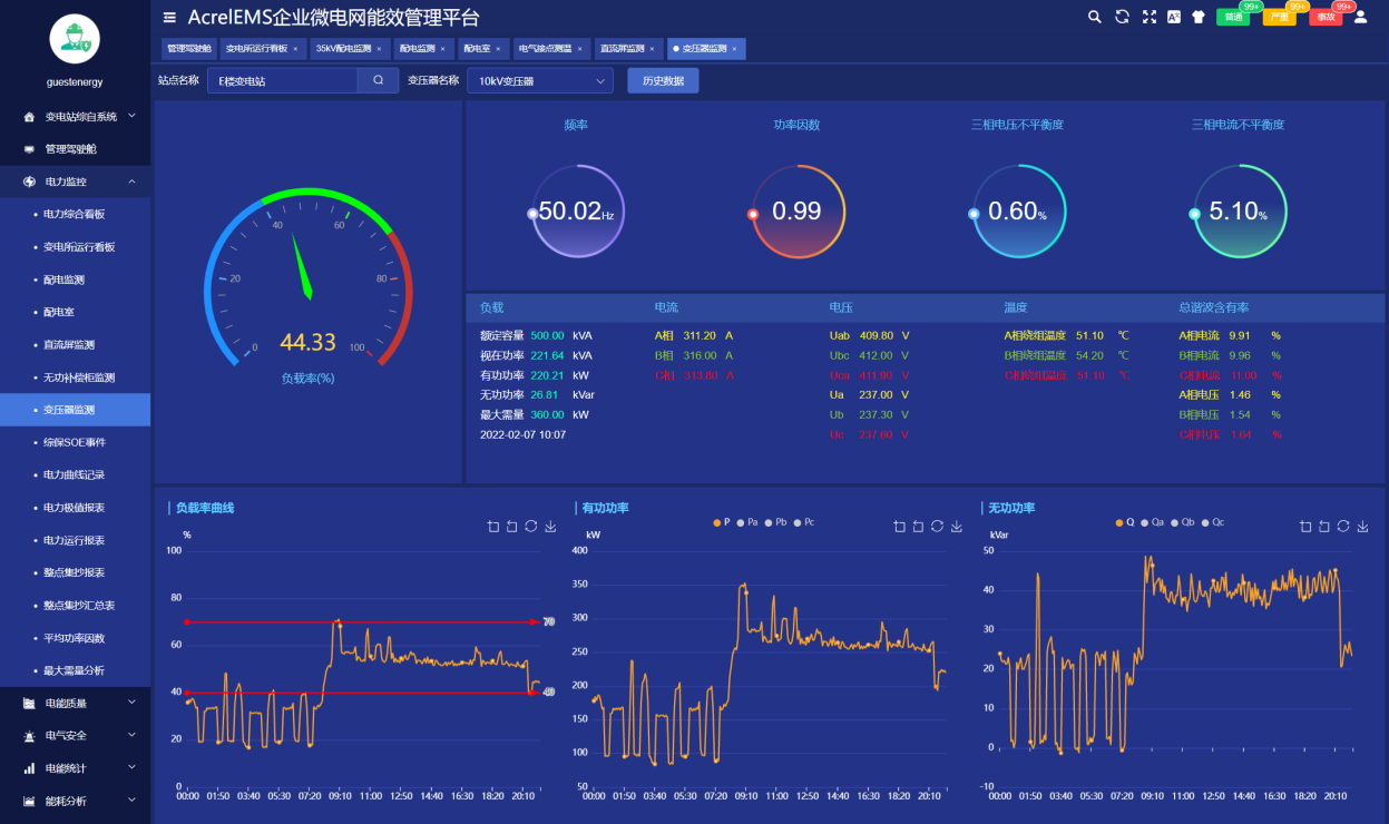 監(jiān)測(cè)各進(jìn)線回路電能質(zhì)量,包括電壓暫降、諧波畸變、閃變等數(shù)據(jù)波形記錄,進(jìn)而判斷配電系統(tǒng)擾動(dòng)方向。