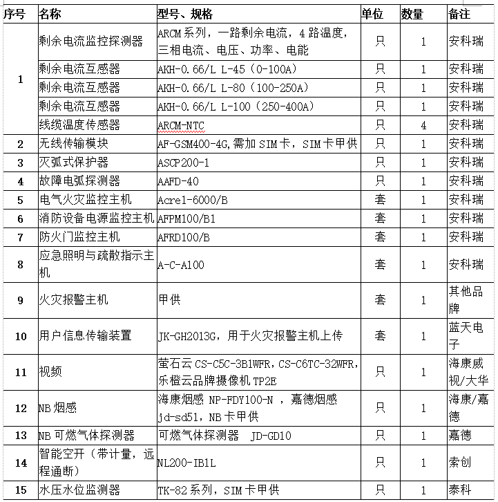 注:以下配置為針對(duì)1個(gè)回路選型,其中剩余電流互感器應(yīng)根據(jù)現(xiàn)場回路電流大