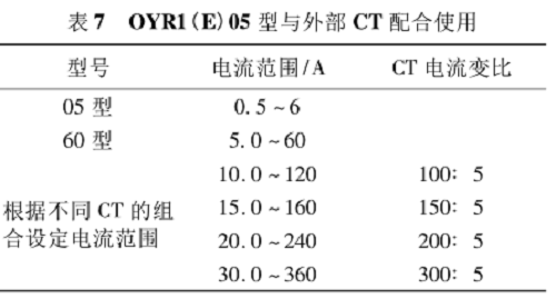 由表7可見(jiàn),采用60型保護(hù)器,其電流為 60 A;但采用05型與外部CT組合后,電流可至360A。當(dāng)然,輸出繼電器的觸點(diǎn)容量也應(yīng)相應(yīng)變大。
