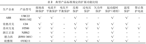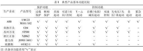 目前,企業(yè)生產(chǎn)的電動(dòng)機(jī)保護(hù)器典型產(chǎn)品基本功能比較如表 1 所示。