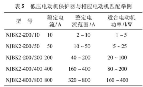 5 低壓電動(dòng)機(jī)保護(hù)器與被控電動(dòng)機(jī)容量的匹配