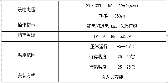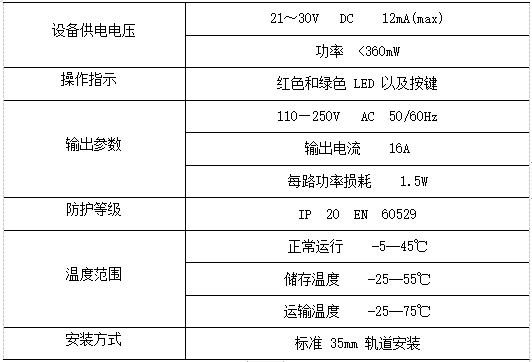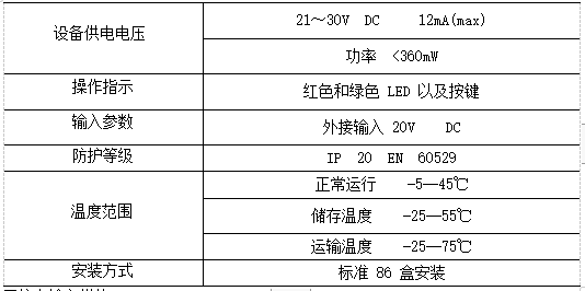用于接受外部干接點信號輸入,可通過不同參數(shù)配置實現(xiàn)開關(guān)、調(diào)光、場景、窗簾控制、調(diào)溫、報警等功能,電氣參數(shù)如下: