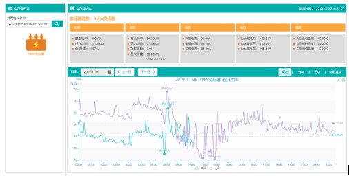實(shí)時監(jiān)測變壓器運(yùn)行情況,包括功率、負(fù)荷率、需量、繞組溫度等。