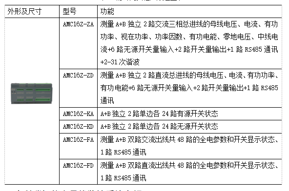 安科瑞智能母線測(cè)控儀表選型如表2,