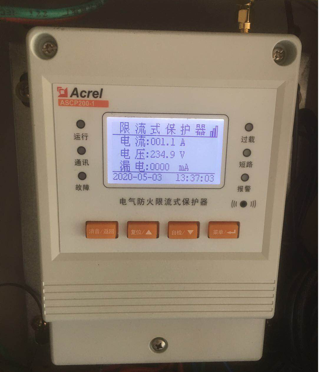 本次使用的是ASCP200-1型電氣防火限流式保護器,保護器是單相限流式保護器,額定電流為63A??蓮V泛應(yīng)用于學(xué)校、醫(yī)院、商場、賓館、娛樂場所、寺廟、文物建筑、會展、住宅、倉庫、幼兒園、老年人建筑、集體宿舍、電動車充電站及租賃式商場商鋪、批發(fā)市場、集貿(mào)市場、甲乙丙類危險品庫房等各種用電場所末端干、支路的線路保護。本項目安裝于住宅的進戶開關(guān)處,能夠保障住宅末端用電安全。