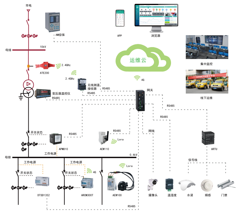 我司的運維平臺綜合運用綜合保護裝置、多功能電力儀表、母排及線纜測溫裝置、 變壓器溫控儀、視頻攝像頭、水浸煙霧、溫濕度、門磁等多種傳感器統(tǒng)一接入變電所現(xiàn)場的邊緣計算網(wǎng)關(guān),經(jīng)邊緣計算網(wǎng)關(guān)將數(shù)據(jù)封裝、壓縮、加密后上傳至云平臺。實時集中監(jiān)測所有變電所用電情況、統(tǒng)一調(diào)度運維巡檢安排,線上線下聯(lián)動;實現(xiàn)用戶側(cè)變配電所的24小時無人值守,全面監(jiān)測各配電回路運行狀態(tài),即時定位故障,降低安全風(fēng)險。通過手機APP下發(fā)運維任務(wù)到指定人員手機上,并通過GPS跟蹤運維執(zhí)行過程。將企業(yè)集團/高等院校內(nèi)廣泛分布的變電所集中統(tǒng)一管理,提高運維效率、提高故障響應(yīng)速度,即時發(fā)現(xiàn)運行缺陷并做消缺處理。為售電企業(yè)提供電能集抄服務(wù),即時掌握用戶用電量情況,避免偏差考核;響應(yīng)泛在電力物聯(lián)網(wǎng)的政策,增加客戶粘性,為后期的增值服務(wù)開展做準備。