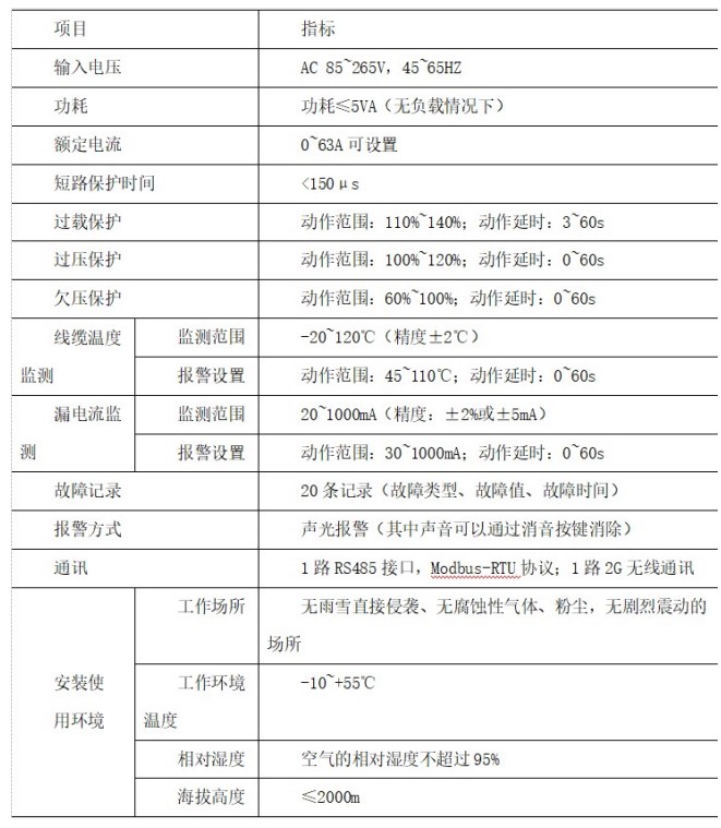 E)電纜溫度監(jiān)測功能,被測線纜溫度超過報警設(shè)定值時,保護(hù)器告警或限流保護(hù)(可設(shè));