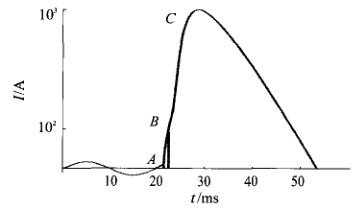 如圖1所示,當(dāng)發(fā)生短路故障時,傳統(tǒng)空氣開關(guān)在電流升至C點時才能動作,且無法瞬時切斷電流,而固態(tài)開關(guān)則可以在電流升至B點時即瞬間切斷短路電流。