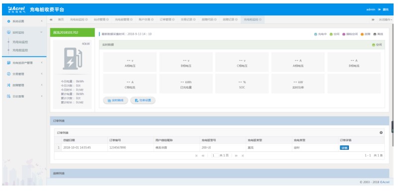 資源管理:充電站檔案管理,充電樁檔案管理,用戶檔案管理,充電樁運行監(jiān)測,充電樁異常交易監(jiān)測。