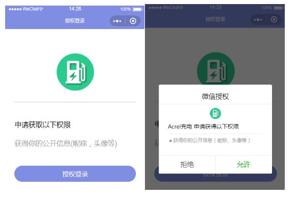 用戶通過搜索或者掃碼等途徑初次打開小程序時,會進(jìn)入這個頁面,需要用戶授權(quán)登錄才可以進(jìn)入小程序主功能頁面,如圖所示: