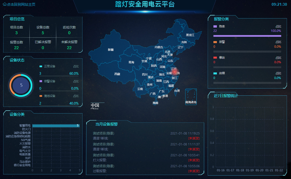 安科瑞路燈安全用電監(jiān)測(cè)預(yù)警系統(tǒng)通過(guò)物聯(lián)網(wǎng)技術(shù)對(duì)安裝在城市各區(qū)域路燈的用電狀態(tài)進(jìn)行不間斷地?cái)?shù)據(jù)監(jiān)測(cè)。安全用電通過(guò)監(jiān)測(cè)路燈線路的電流和電壓值來(lái)判斷路燈的工作情況,任何不正常的工作狀態(tài),平臺(tái)都能進(jìn)行監(jiān)測(cè)和預(yù)警,預(yù)警信息通過(guò)手機(jī)APP推送,短信,語(yǔ)音電話和郵件等,時(shí)間到達(dá)責(zé)任人的身邊,提醒運(yùn)行人員接觸器跳閘,電源失壓等等。平臺(tái)也可以設(shè)置開(kāi)合閘時(shí)間,每天定時(shí)控制路燈控制器的啟動(dòng)和關(guān)閉。