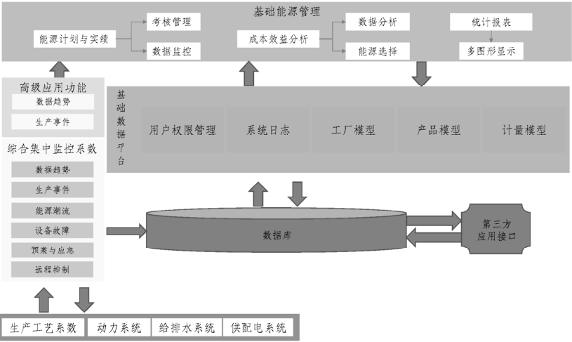 積極推動(dòng)互聯(lián)網(wǎng)、大數(shù)據(jù)、人工智能等新一代信息技術(shù)與鋼鐵制造的深度融合是鋼鐵企業(yè)下一步研發(fā)重點(diǎn)[9]。能源管理系統(tǒng)基于自動(dòng)化技術(shù)、網(wǎng)絡(luò)通信技術(shù)、實(shí)時(shí)數(shù)據(jù)庫技術(shù)、數(shù)據(jù)分析及預(yù)測(cè)技術(shù),對(duì)鋼鐵企業(yè)提供數(shù)據(jù)定制化管理服務(wù),優(yōu)化能源管理。該系統(tǒng)建成后,將為鋼鐵企業(yè)的管理、生產(chǎn)計(jì)劃、調(diào)度決策及OA提供準(zhǔn)確、實(shí)時(shí)的生產(chǎn)工藝計(jì)量數(shù)據(jù),對(duì)于構(gòu)筑信息化工程、實(shí)施精細(xì)化生產(chǎn)和精細(xì)化管理是十分重要的??梢愿鶕?jù)系統(tǒng)所采集的數(shù)據(jù)進(jìn)行公司級(jí)、廠際級(jí)能源核算,實(shí)現(xiàn)計(jì)量系統(tǒng)分級(jí)化管理,提高計(jì)量信息化管理水平,使計(jì)量管理更精細(xì)、更準(zhǔn)確、更高效。是鋼鐵企業(yè)通往節(jié)能降耗,減員增效路徑上的重要“橋梁”。