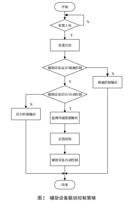 配電室會(huì)發(fā)生用電超負(fù)荷過熱引發(fā)火災(zāi)、水浸等環(huán)境因素導(dǎo)致設(shè)備損壞、設(shè)施被盜等情況,嚴(yán)重影響系統(tǒng)供電的可靠性。配電室需要安裝空調(diào)、風(fēng)機(jī)、水泵、除濕機(jī)和聲光報(bào)警器等輔助設(shè)備,一旦遇到突發(fā)情況,就可以聯(lián)動(dòng)和遠(yuǎn)程控制輔助設(shè)備。無線網(wǎng)關(guān)需要接收主站監(jiān)控系統(tǒng)的命令,也可以替代運(yùn)維人員快速聯(lián)動(dòng)輔助設(shè)備,當(dāng)發(fā)生告警信息時(shí),其可以智能聯(lián)動(dòng)相關(guān)輔助設(shè)備,及時(shí)處理突發(fā)事件,防止事故進(jìn)一步升級(jí)惡化。輔助設(shè)備聯(lián)動(dòng)控制策略如圖2所示。