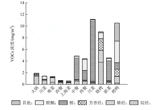 1)本文綜述了餐飲油煙VOCs的排放特征。結(jié)果表明,不同烹飪風(fēng)格和烹飪?cè)蠒?huì)導(dǎo)致VOCS排放有很大差異。不同菜系烹飪油煙 VOCs排放種類和濃度有明顯差異。典型的非燒烤類菜系中以川菜污染排放較為嚴(yán)重,主要以烷烴和烯烴為主。燒烤類菜系以芳香烴類化合物排放為主。不同食用油中,大豆油污染排放濃度較高,玉米油則相對(duì)健康。目前,國(guó)內(nèi)外對(duì)餐飲油煙VOCs排放特征的研究取得了大量成果,但油煙 VOCs 采樣方式與排放量的估算仍需進(jìn)一步規(guī)范。相關(guān)部門要加強(qiáng)小規(guī)模及未注冊(cè)餐飲業(yè)的排放監(jiān)測(cè),獲得相關(guān)排放系數(shù),提高排放量估算的準(zhǔn)確性,對(duì)制定相關(guān)排放標(biāo)準(zhǔn)和控制措施具有指導(dǎo)意義。