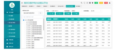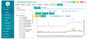 電力數(shù)據(jù)顯示變電所各回路的電力數(shù)據(jù)和曲線,包括電流、相電壓、線電壓、頻率、功率因數(shù)、有功功率、無功功率、視在功率等參數(shù),并可導(dǎo)出圖表。