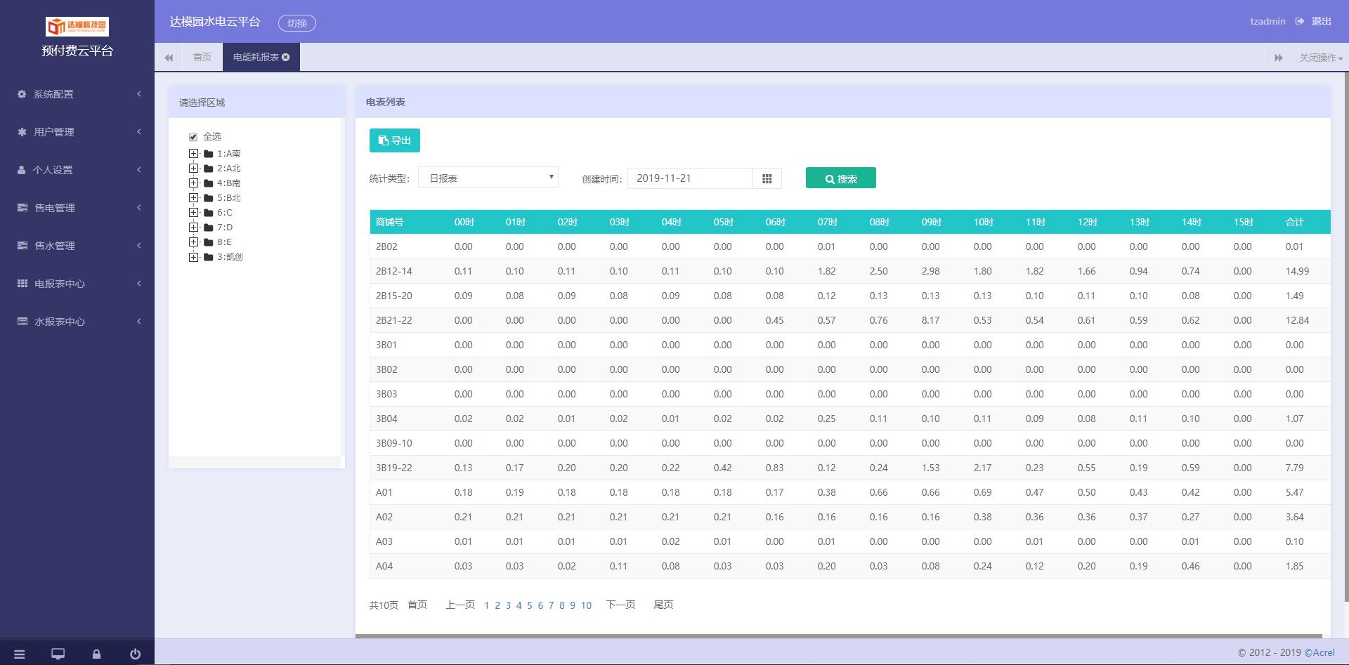 用戶和管理員都可查詢預(yù)付費(fèi)表或管控表每天的用能狀況;可提供能耗分析+財(cái)務(wù)軌跡一體式綜合管理報(bào)表,包含用戶表的能耗、財(cái)務(wù)數(shù)據(jù)、能耗和財(cái)務(wù)的期初期末值等數(shù)據(jù)